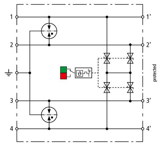 Prostorově úsporný kompaktní kombinovaný svodič o šířce 12 mm a připojovací technologií push-in, s ukazatelem stavu, pro ochranu 4 bezpotenciálových vedení čtyřvodičových měřicích okruhů IT systémů a MaR.