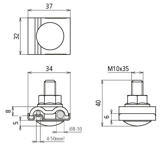 Uzemňovací svorka UNI pro propojení montážních konstrukcí s funkčním vyrovnáním potenciálů, uzemněním nebo vyrovnáním potenciálů při působení blesku. Nerezové provedení se šroubem M10 a s přírubovou maticí s ozubením. Prostřednictvím kontaktní plochy (ner