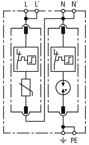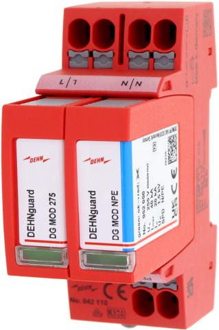 Vícepólový svodič přepětí DEHNguard MP, typ 2 + typ 3 podle EN 61643-11skládající se ze základního dílu se zásuvnými ochrannými moduly a dvojité push-in připojovací svorky pro rozvětvené a průchozí zapojení. Vysoký stupeň bezpečnosti je zajištěn monitorov