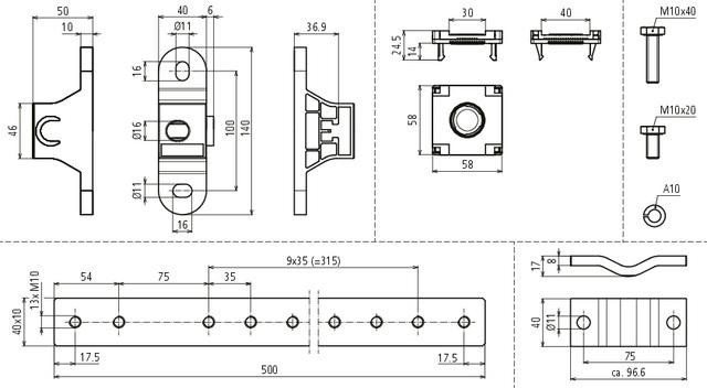Jiskrově bezpečná přípojnice pro vyrovnání potenciálů v prostředí Ex pro napojení kovových vodičů a kabelů na vyrovnání potenciálu v ochraně před bleskem podle ČSN EN 62305-3 (IEC 62305-3, VDE 0185-305-3) jakož i ochranného a funkčního vyrovnání potenciál