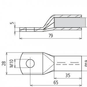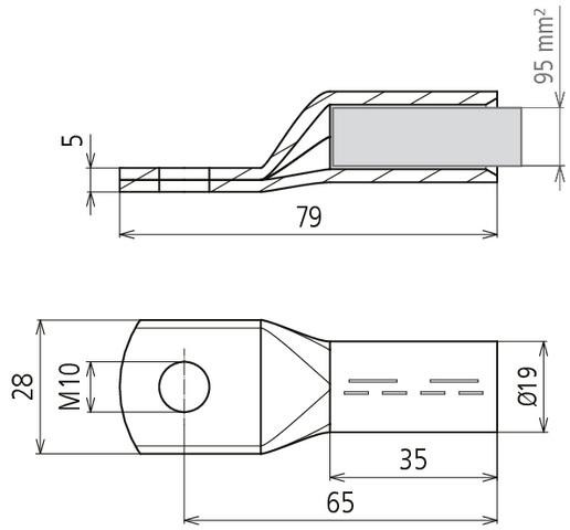 Lisovací kabelové oko podle DIN 46235, průřez 95 mm² M10 Cu/gal Sn s niklovou bariérovou vrstvou. Aby se zabránilo tvorbě "vousů" v Ex prostředí, doporučuje se použití pocínovaných nalisovaných kabelových ok s niklovou bariérovou vrstvou.