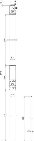 Podpůrná trubka GFK/AL s vnitřní oblastí koncovky a PA svorkou pro vodič HVI light plus, pro instalaci oddálené (izolované) jímací soustavy, s jímací tyčí. Pro dodržení dostatečné vzdálenosti vůči vodivým částem podle ČSN EN 62305-3. Trubka D40 z umělé hm