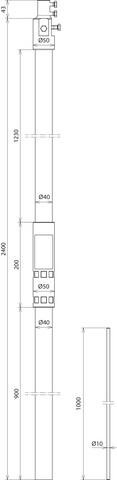 Podpůrná trubka GFK/AL s vnitřní oblastí koncovky a PA svorkou pro vodič HVI light plus, pro instalaci oddálené (izolované) jímací soustavy, s jímací tyčí. Pro dodržení dostatečné vzdálenosti vůči vodivým částem podle ČSN EN 62305-3. Trubka D40 z umělé hm