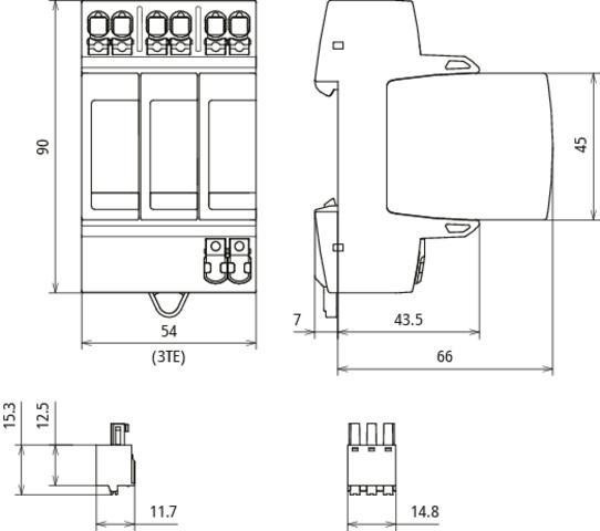 Vícepólový svodič přepětí DEHNguard MP YPV, typ 2 podle EN 61643-31, skládající se ze základního dílu se zásuvnými ochrannými moduly a dvojité push-in připojovací svorky pro rozvětvené a průchozí zapojení. Vysoký stupeň bezpečnosti je zajištěn monitorovac