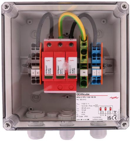 Rozvodná skříň generátoru DCU 2 YPV 1100 1M 2S, stupeň krytí IP65. K ochraně jednoho vstupu MPP a dvou stringů podle normy DIN EN IEC 61439-2. Třístupňové stejnosměrné spínací zařízení s kombinovaným odpojovacím a zkratovacím zařízením s bezpečným elektri