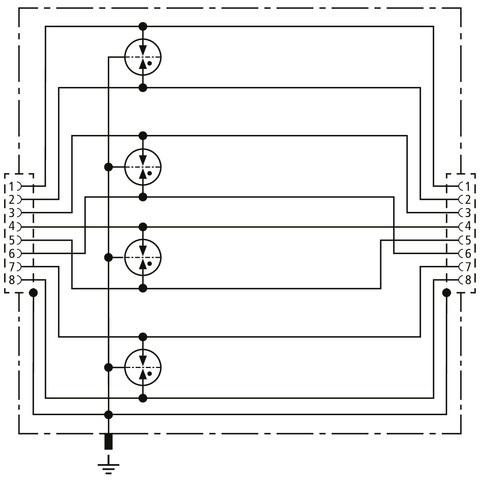 Univerzální, prostorově úsporný svodič bleskových proudů o šířce 19 mm a konektory RJ45 pro vyrovnání potenciálů v ochraně před bleskem. Chrání aplikace se strukturovanou kabeláží podle třídy D do 100 MHz, např. Industrial Ethernet, datové distributory, d