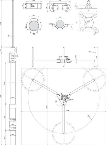 Jímací stožár pro vodič HVI light plus, pro umístění na ploché střechy, s přizpůsobením ke sklonu střechy do max. 10°. Komplet se čtyřnásobnou připojovací destičkou pro vodič HVI light plus, upevňovací sadou pro montáž vodiče a stojanu. Celková výška podp