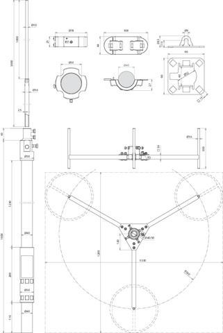 Jímací stožár pro vodič HVI light plus, pro umístění na ploché střechy, s přizpůsobením ke sklonu střechy do max. 10°. Komplet se čtyřnásobnou připojovací destičkou pro vodič HVI light plus, upevňovací sadou pro montáž vodiče a stojanu. Celková výška podp