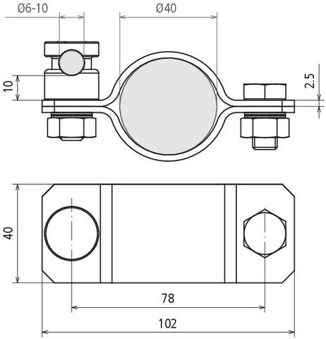 Připojovací svorka podle ČSN EN 62561-1, pro připojení drátu k jímací tyči pomocí svorky KS.