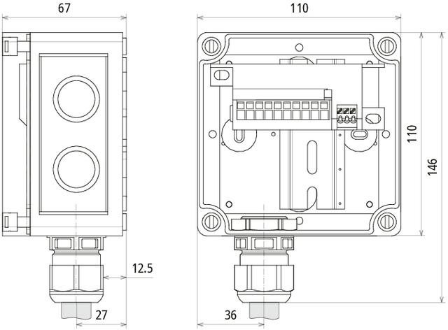 Připojovací skříňka DCU EMOB 2 16, typ 2 + typ 3, stupeň krytí IP 65, podle DIN EN IEC 61643-11 a 61439-2, pro univerzální instalaci před Wallbox.