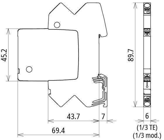 | Uzemnenie cez: | 35 mm DIN rails acc. to EN 60715 |