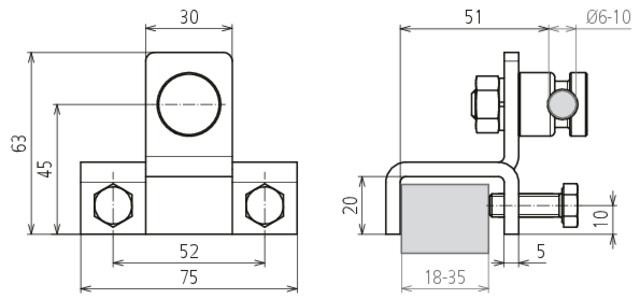 Připojovací svorka pro ocelové nosníky podle ČSN EN 62561-1, pro připojení ocelových konstrukcí. Provedení kolmé se svorkou KS, připojení podélné nebo příčné. Šrouby jsou díky pérové podložce zajištěny proti samovolnému uvolnění. Vhodné pro použití v Ex z