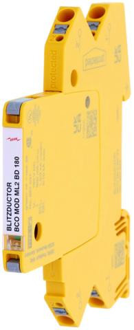 Prostorově úsporný, modulární kombinovaný svodič o šířce 6 mm a připojovací technologií push-in, s ukazatelem stavu, pro ochranu 1 páru vedení bezpotenciálových symetrických rozhraní. S rozpojením signálových cest pro účely údržby.