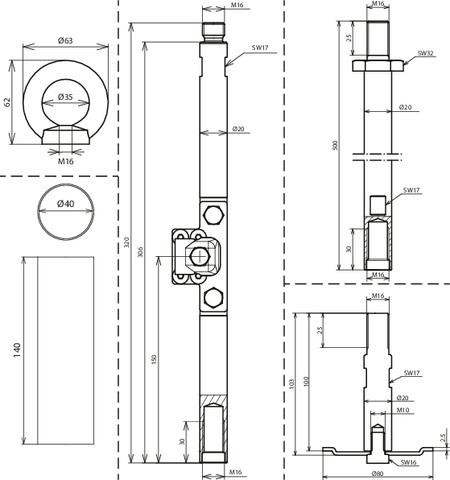 Základní sada šroubovacího hloubkového zemniče se závitem M16, Ø 20 mm. Základní sada obsahuje 1× připojovací kus s připojovací destičkou FeZn, 1× kroužkovou matici FeZn M16, 2× středový díl 500 mm FeZn, 1× patku FeZn a 1× smršťovací bužírku.