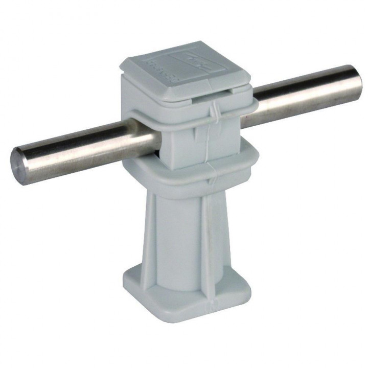 Umelohmotný systém s voľným uchytením vedenia. Sivá farba, H 36 mm, pre priem. 8mm, so závitom M6.