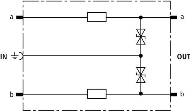 Zásuvný modul pre jeden pár vedení, energeticky skoordinovaný s blokom DRL. Je vhodný na použitie ako jednostupňová ochrana s oddeľovacou impedanciou pre koncové zariadenia. Chráni 2 žily signálnych obvodov so spoločným vzťažným potenciálom. Uzemnenie zvo