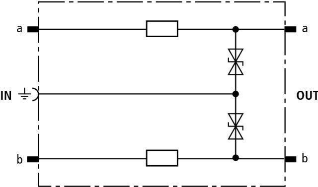 Zásuvný modul pre jeden pár vedení, energeticky skoordinovaný s blokom DRL. Je vhodný na použitie ako jednostupňová ochrana s oddeľovacou impedanciou pre koncové zariadenia. Chráni 2 žily signálnych obvodov so spoločným vzťažným potenciálom. Uzemnenie zvo